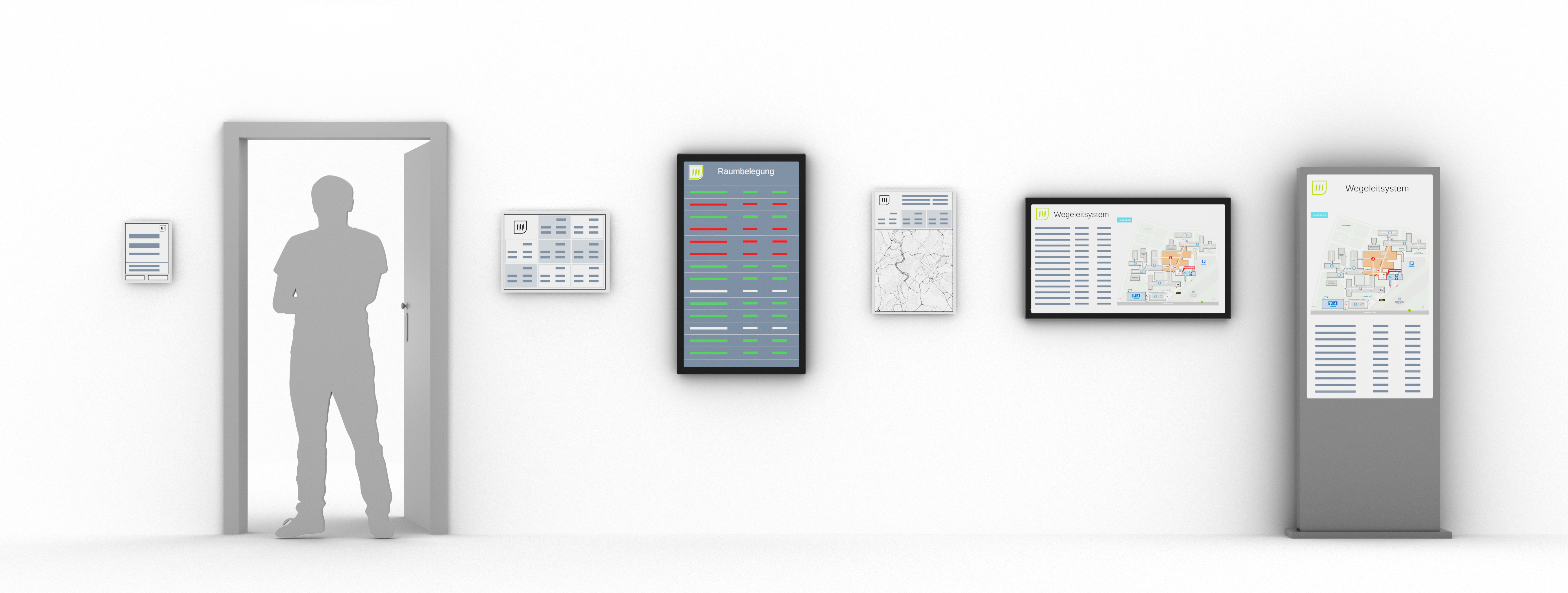 Besucher- und Orientierungsleitsysteme führen den Besucher vom Außenbereich bis zum gewünschten Zimmer. Ein gutes Leitsystem fügt sich dezent in das Umfeld ein und ist gleichzeitig ein eindeutiger Wegweiser.